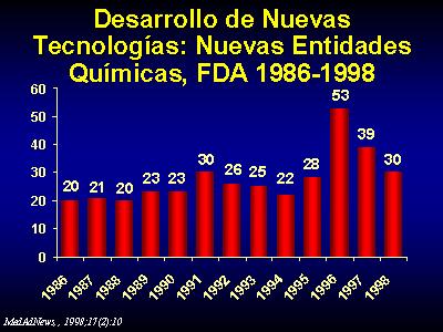 El desarrollo de nuevas tecnologías explica una parte importante del incremento del gasto. Cada nueva tecnología que aparece en el mercado sanitario supone siempre una mejora de la calidad y un incremento del coste. En el caso especifico de los medicamentos todos los años aparecen en el mercado mas de 20 nuevas entidades químicas, cada una de ellas de mayor coste que las ya disponibles en el mercado.