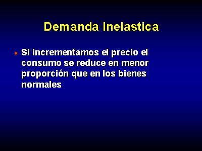 La demanda sanitaria es inelastica. Ello significa que si incrementamos el precio el consumo se reduce en menor proporción que en los bienes normales.