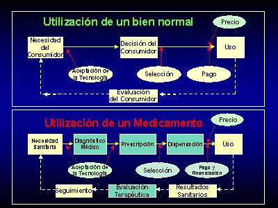 En este gráfico vemos el sistema de utilización de un bien normal en comparación con un medicamento.
