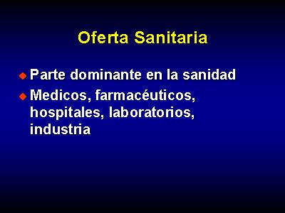 Como hemos visto, la falta de información de los pacientes hace que la oferta sanitaria represente la parte dominante en la sanidad.