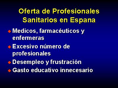 Existe un excesivo número de profesionales , lo que genera desempleo y frustación, además de los altos costes de formación de esos profesionales que no ejerceran su profesión.