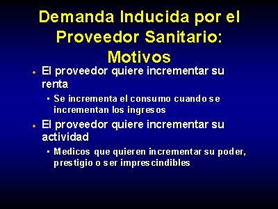 Aunque la demanda inducida por el proveedor parezca que sucede principalmente en el sector privado, tambien se da en el sector público. En los casos en que el salario no se incrementa si se incrementa la actividad, el proveedor en el sector público puede desear incrementar la actividad para aumentar su poder, prestigio o ser imprescindibles para la organización.
