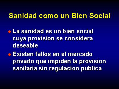 Y es que la sanidad se considera un bien social cuya provision se considera deseable, y además, existen fallos en el mercado privado que impiden la provision sanitaria sin regulacion publica