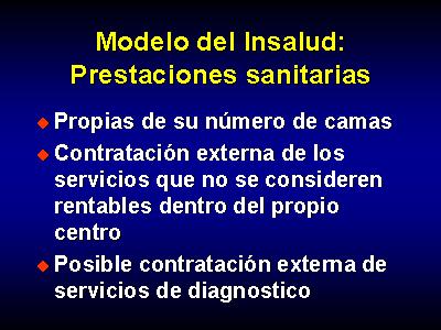 Las prestaciones del centro son las propias de su número de camas. Cabe la contratación externa de los servicios que no se consideren rentables dentro del propio centro, y la posible contratación externa de servicios de diagnostico.