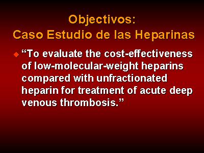 El estudio de las heparinas incluye el objetivo general de evaluar el coste-efectividad de dos tratamientos, lo que es coherente con los valores sociales. El cálculo del coste-efectividad es un objetivo que es cuantificable.