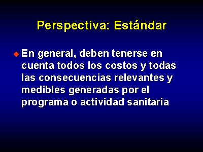 El estándar de la teoría de la evaluación económica es que, en general, deben tenerse en cuenta todos los costos y todas las consecuencias relevantes y medibles generadas por el programa o actividad sanitaria.