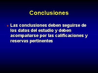 Las conclusiones deben seguirse de los datos del estudio y deben acompaņarse por las calificaciones y reservas pertinentes