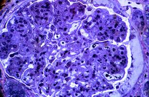 Fig# 15. GNPP III. CA2, CC3 (OMS VI?): GNPP III con semilunas epiteliales < 50%, semilunas fibrosas >50% . Fibrosis >50%. |