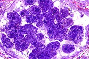 Fig# 10. GNMB I, CA3, CC1 (OMS ?). GNMB y semilunas epiteliales. Fibrosis temprana < 25%. MOAR 400X. |