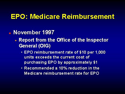 Office of Inspector General "Review of Epogen Reimbursement," issued November 24, 1997.