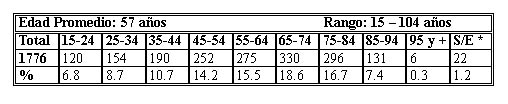 Los 1776 fallecidos con DMO representaron el 10% del total de autop-sias revisadas. El rango por hospitales varió entre 0 y 47%. Fueron del sexo masculino el 55,4% de los fallecidos con DMO. El índice M/F fue de 1,24. La edad promedio fue 57 años y la década de 65-74 la más representada. Tenían 55 y más años el 59,2% de los casos (tabla 2).