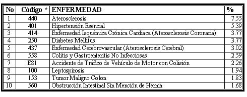 Las causas básicas de muerte más frecuentes fueron la aterosclerosis, la hipertensión arterial y la diabetes mellitus (tabla 4).