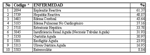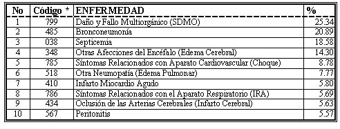 Las causas directas de muerte y las causas intermedias de muerte, estudiadas en conjunto y más usuales, fueron el DMO y el SDMO como tal, la bronconeumonía y la septicemia (tabla 5).