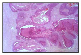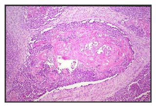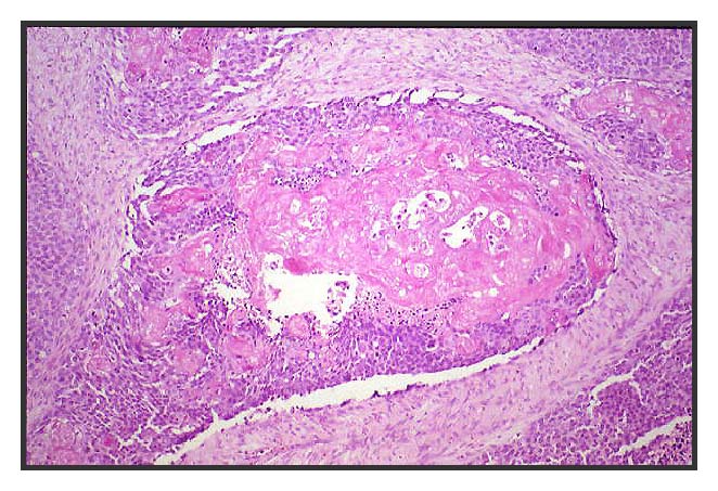 El Carcinoma Pilomatricial se reconoció como una variante maligna de pilomatrixoma por Lopansri y Mihm en 1.980. Este tipo de carcinoma es muy poco frecuente, no llega a 60 los casos publicados en la literatura. Es importante la separación del pilomatrixoma para indicar una adecuada extirpación quirúrgica, ya que con frecuencia recurren ( 60% ) y pueden llegar a dar metástasis viscerales. Suele confundirse este tumor con el carcinoma de células basales con diferenciación matricial.