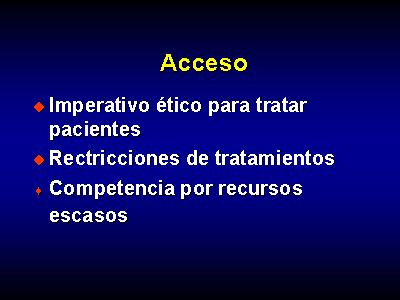 El acceso a los servicios sanitarios se está generalizando en nuestro país y en latodos los países más desarrollados. Existe un imperativo ético para tratar a los pacientes, pero debido a la escasez de recursos se producen restricciones de tratamientos (como el caso de los denominados medicamentazos) y una competencia entre profesionales y organizaciones por el uso de esos recursos.