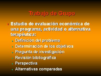 económica de una programa, actividad o alternativa terapéutica.